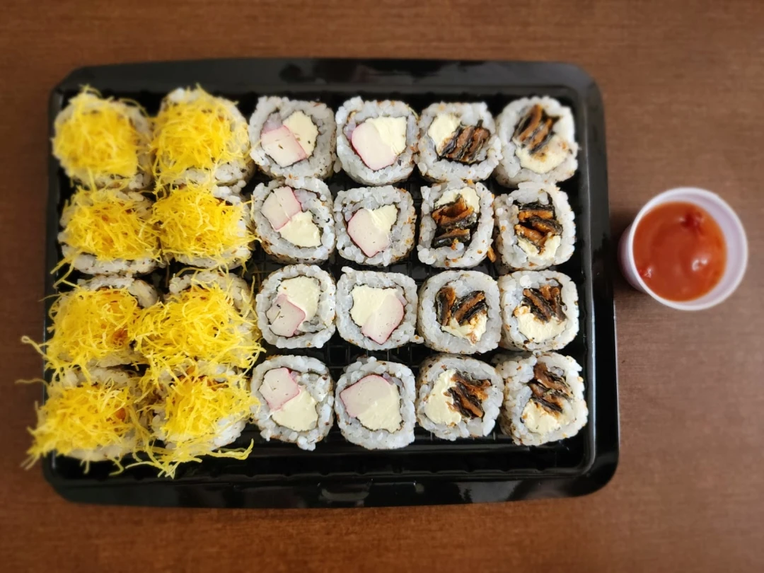 4 Uramaki Filadélfia, 4 Shake Maki, 4 Uramaki Califórnia, 4 Romeu e Julieta Acompanha: 3 sache de shoyo, 1 hashi, 1 nozoki