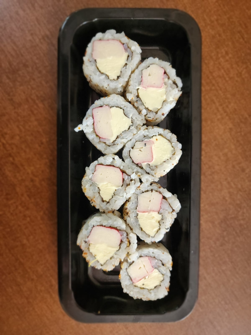 8 rolinhos de arroz recheados com kani kama e cream cheese (Acompanha 1 hashi, 1 nozoki, 2 sachês shoyo)